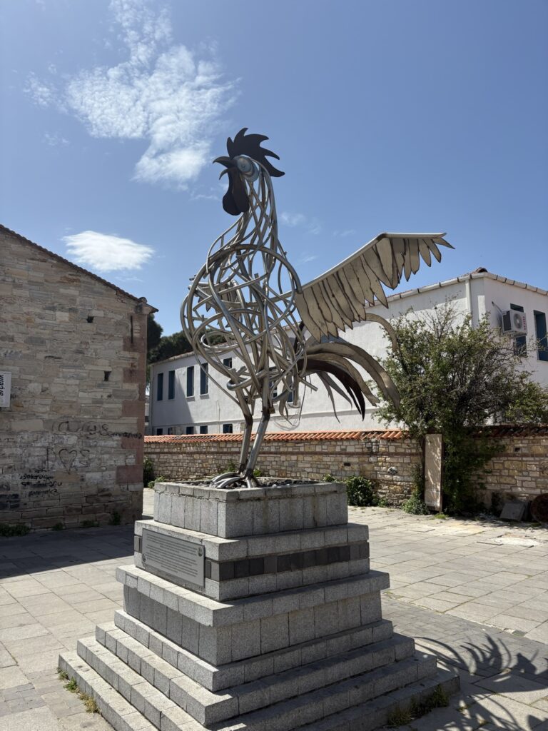 Dans une place de la vieille ville, sous une statue de métal qui représente un coq, une plaque explique en turc que les fondateurs de Marseille auraient emporté avec eux des statuettes religieuses de coq. Le coq était aussi présent sur les pièces de monnaie des Phocéens . D’après le texte qui me semble très improbable ce symbole aurait été transmis de génération en génération et conservé par les marseillais. Au moment de la révolution française , le coq serait devenu le symbole national que nous connaissons tous.