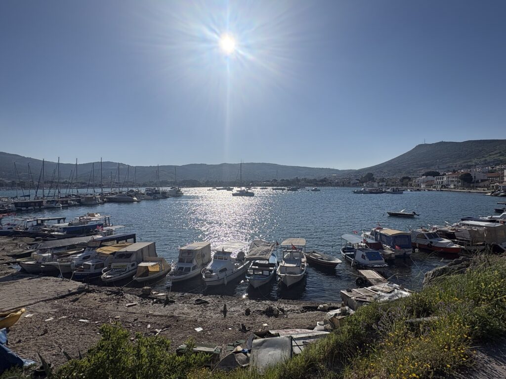 Phocée, un port très agréable, calme surtout en cette saison. Peu de touristes hormis le samedi soir. Pas croisé d’étrangers. Les bateaux sont tous à quai. Le vent est fort. Les pêcheurs sont rentrés ils déballent et rangent la pêche du jour. Loups daurades…