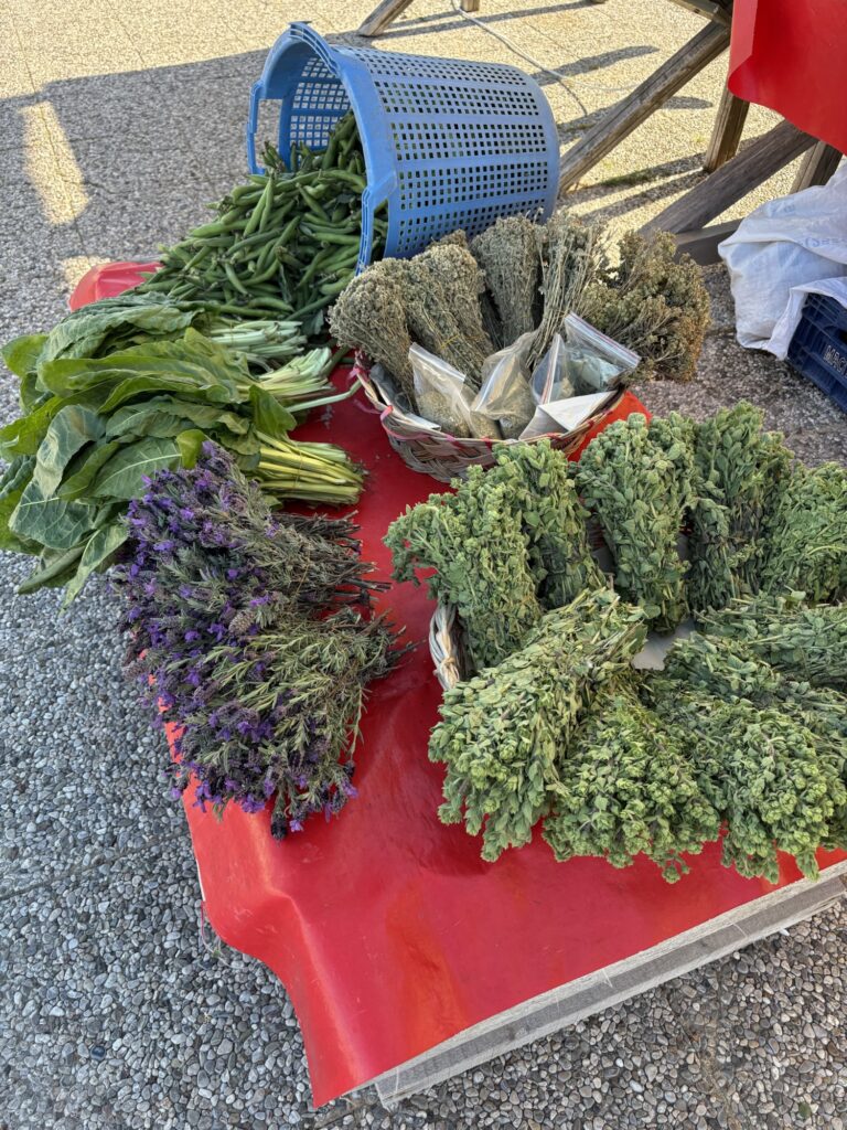 Nous croisons un petit marché de producteurs locaux de confiture artisanale, olives et légumes. chacun présente sa production des plantes insolites qu’on ne connaît pas, les olives bien évidemment l’huile d’olive, des plats cuisinés et d’autres sortes d’herbes.
