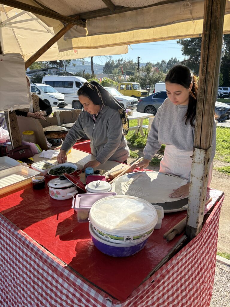 Un à un les stands s’installent une jeune femme porte un foulard vert et n mousseline de coton, accompagnée de sa petite-fille elle installe son stand de pain, de pain d’épices, de biscuits. Une installation plutôt esthétique qui fait envie.